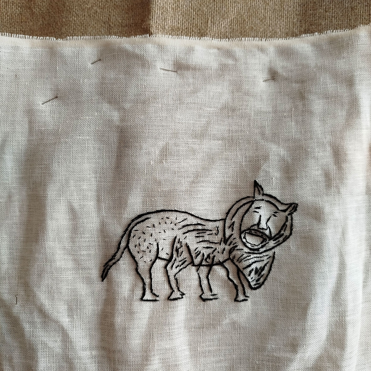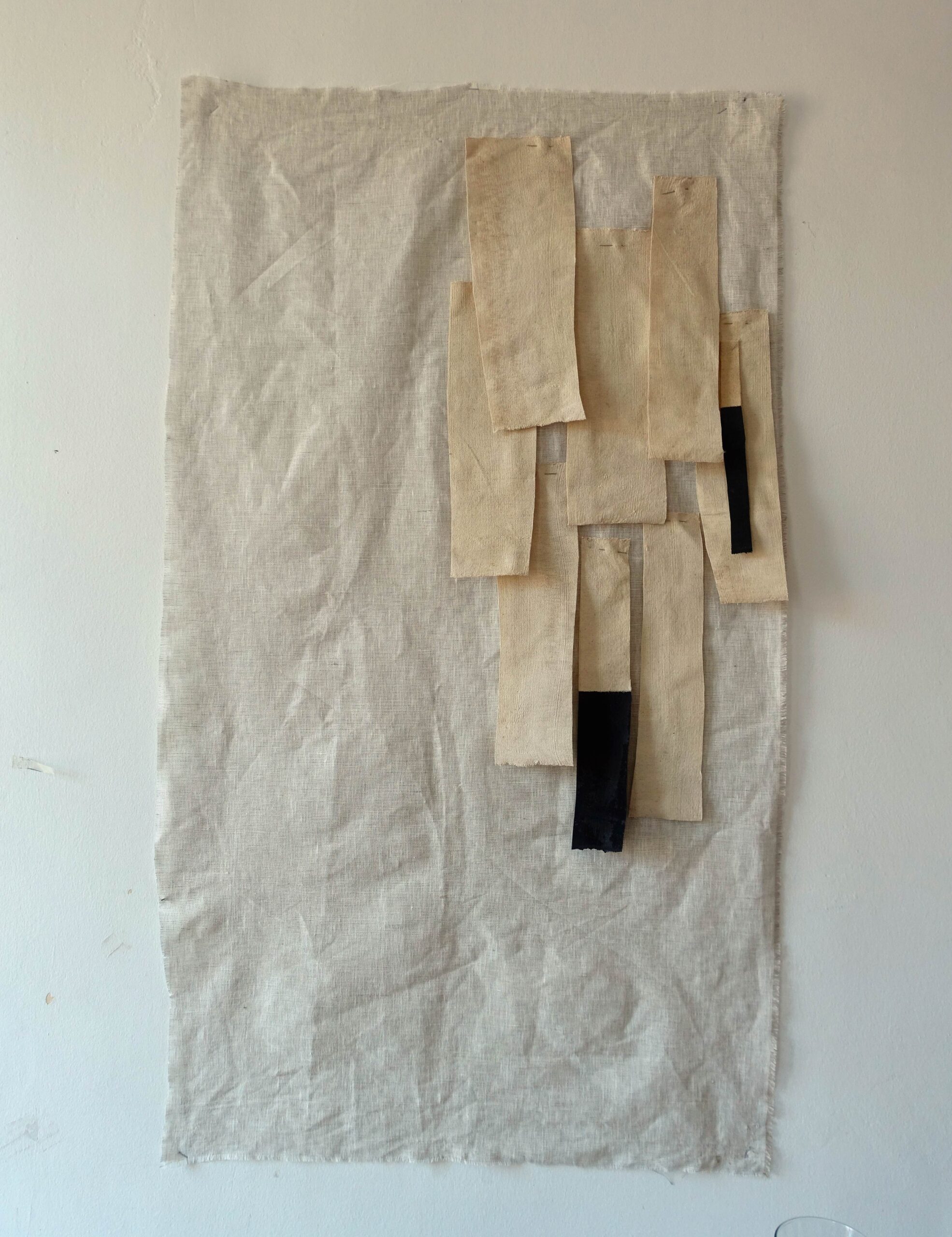 A la fin du 19e siècle, les manufactures européennes entrées en concurrence en Europe, imitent les motifs des cotonnades africaines pour le marché intérieur de leurs colonies. Ces tissus deviennent à leur tour objet de détournement sur le continent africain quand les tisserands africains reproduisent les motifs européens pour attirer leur clientèle avec des nouveautés. Cette étude pour un rideau de scène explore les perceptions spatiales et narratives en jouant sur l’ambiguïté des repères visuels et conceptuels.